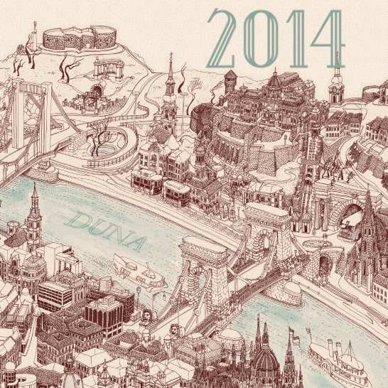 2014 Calendar Poster - Bird's Eye View Map of Budapest